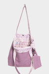 Fresh and elegant — this tote pairs a lavender linen body with a soft cream leather base, finished with contrast baseball stitching. The interior reveals a coordinating lavender ikat print lining for a polished touch. Completed with nickel hardware and a matching detachable Mouse Pouch.