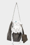 Bag Fabric Features: This GOATT is constructed of “undetermined fiber content”. The outside of this GOATT is a distinctive mocha brown, with fabric salvage exposed on the front pocket. The interior is cream-colored linen with striking embroidery. The base is chocolate-colored Italian suede with baseball stitching.