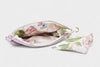 Bag Fabric Features: This So Clutch is constructed of pink velvet on the outside and rose print of "undetermined fiber content” for the lining. The front pocket is adorned with cream colored fur remnants.