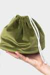 Poppy 6- Olive Velvet Drawstring Bag