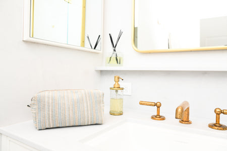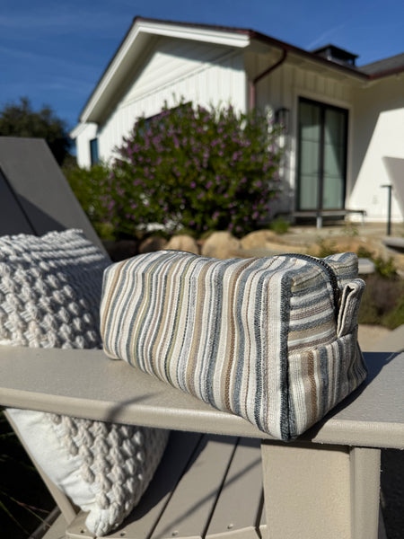 The SB bag is inspired by my beautiful hometown, Santa Barbara (SB), as well as my favorite travel companions, the Sabino Boys (SB). The SB bag is the perfect Dopp kit and serves as an amazing one-of-a-kind gift for the one-of- a-kind travel companions in your life. This bag is made with hand washable, rescued remnants, so stay ready for whatever adventures come your way.