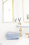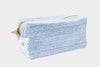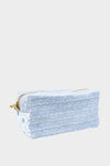 Bag Fabric Features: Constructed of “undetermined fiber content”, presumably indoor/outdoor fabric. The outside is a textured is blue and the lining is a blue and tan stripe.