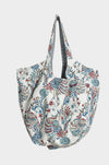 Two looks in one, this reversible bag brings bold versatility to your everyday carry. One side features a navy-and-cream basketweave accented with solid navy panels, while the reverse bursts with whimsical bird-and-floral print in rich shades of teal, red, and cream. Designed to shift with your mood and outfit, it’s a statement piece that’s both playful and refined. Finished with antique brass hardware for a polished touch.