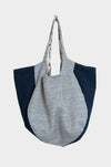 Materials: Basketweave tapestry, printed linen, solid navy fabric